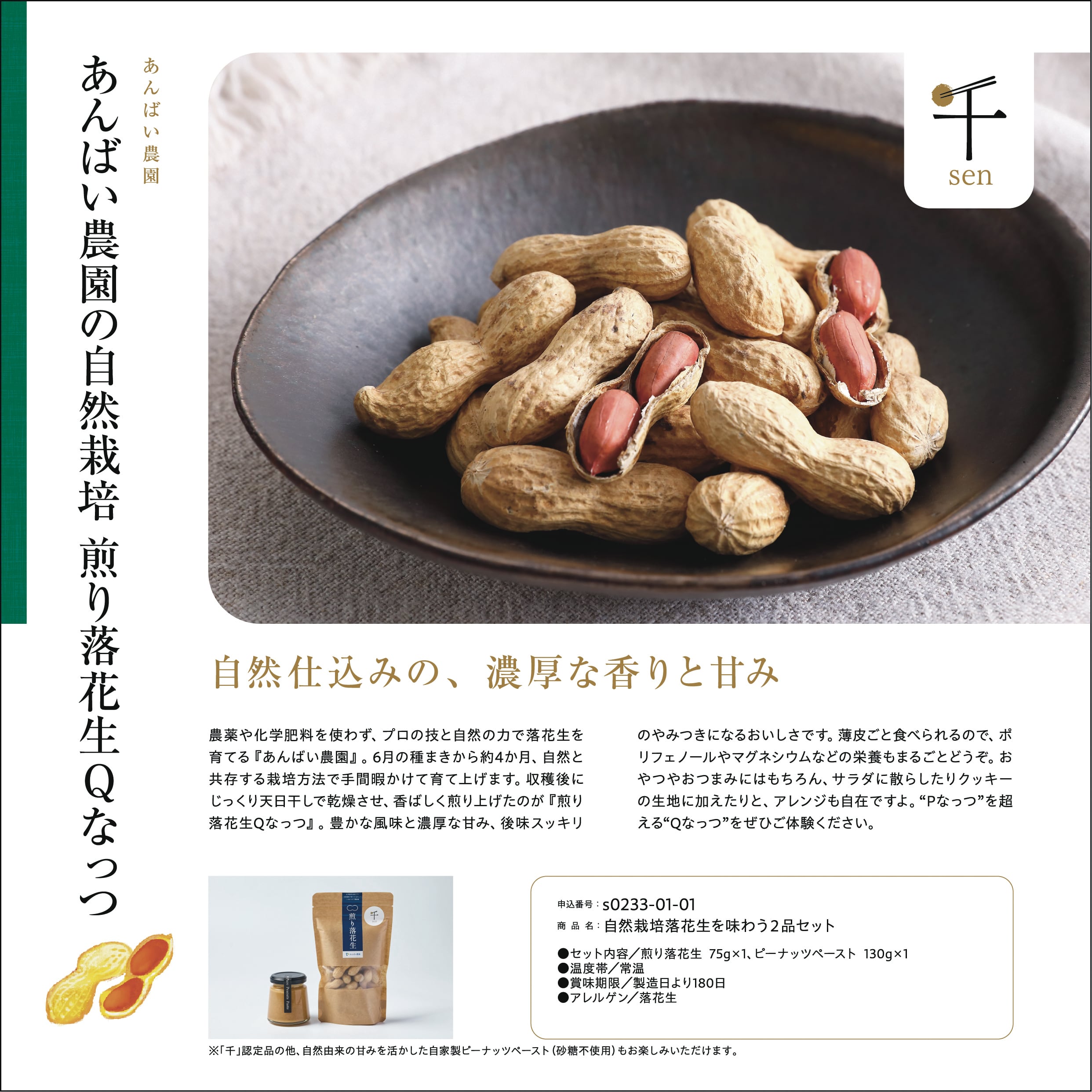 “千葉市の食を千年先へ”をコンセプトに、千葉市の農産物・加工食品・食関連サービスを対象に、優れた地域産品であると同時に社会課題の解決に取り組む生産者・事業者の作る商品・サービスを「千」として認定しています。